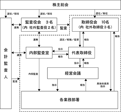 また、これらを実践するために、意思決定及び業務執行の迅速化を図り、経営環境、市場環境の変化に迅速かつ的確に対応できる経営体制を構築するとともに、内部統制の実効性を高め、業務執行に対する監視機能を有効に機能させ、更には適時適切な情報開示を行えるよう、一層の経営管理体制の強化に取り組んでまいります。